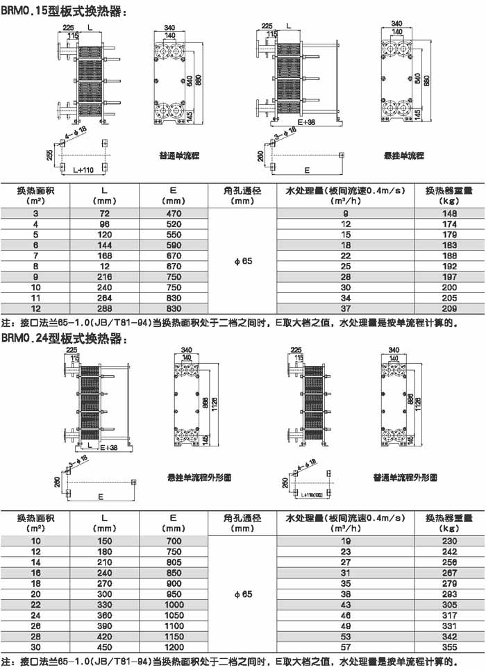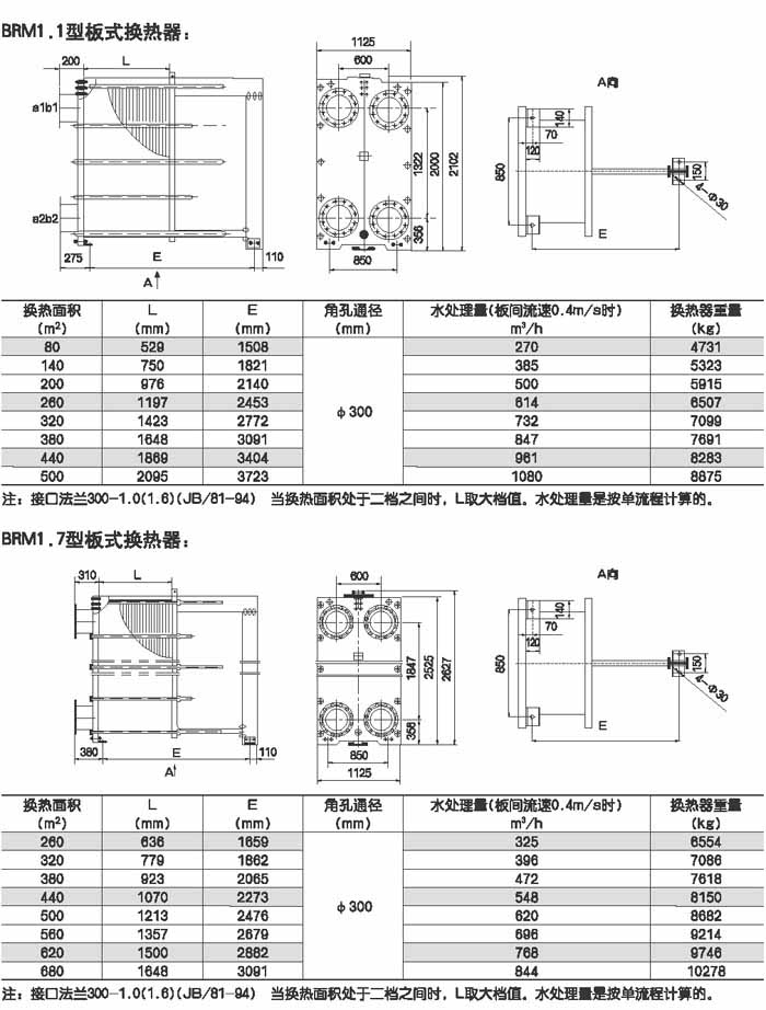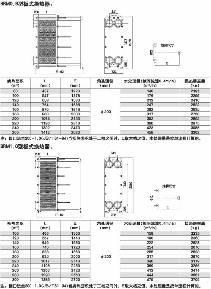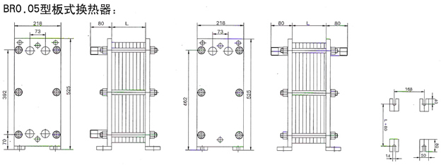 BRMO.0是指單片換熱板片的有效換熱面積為0.g平方米,其它型號的意義相同。選擇某種型號采用不同數量的換熱板片就可組裝成所需換熱面積的換熱器。
