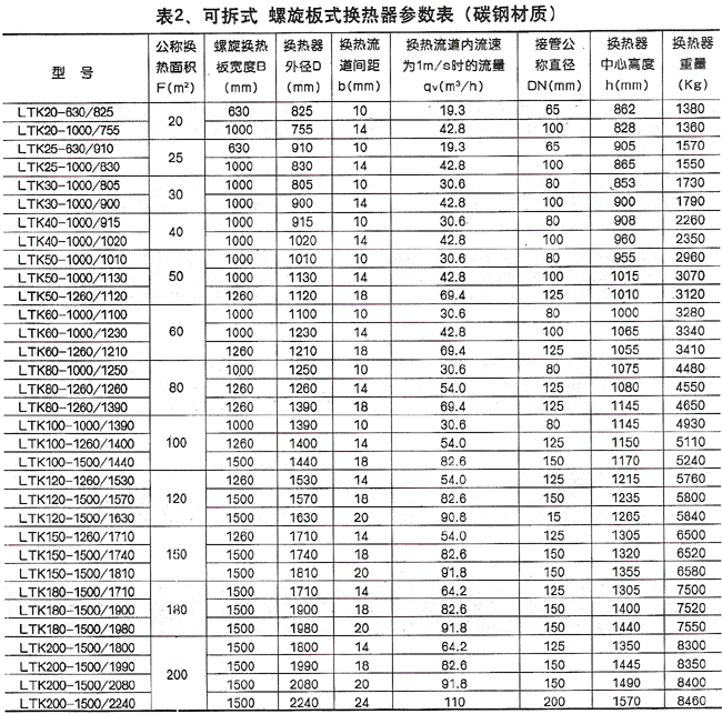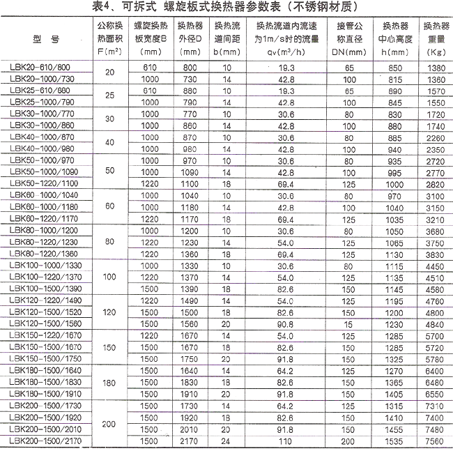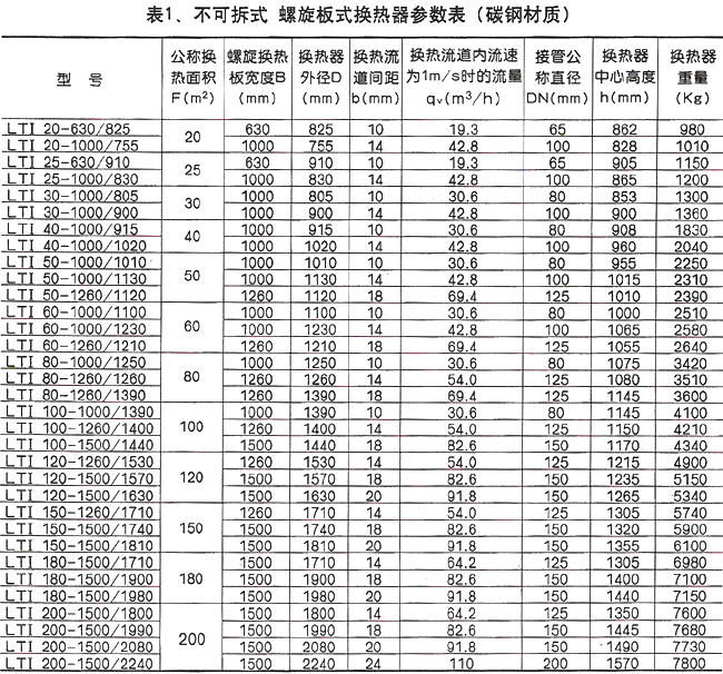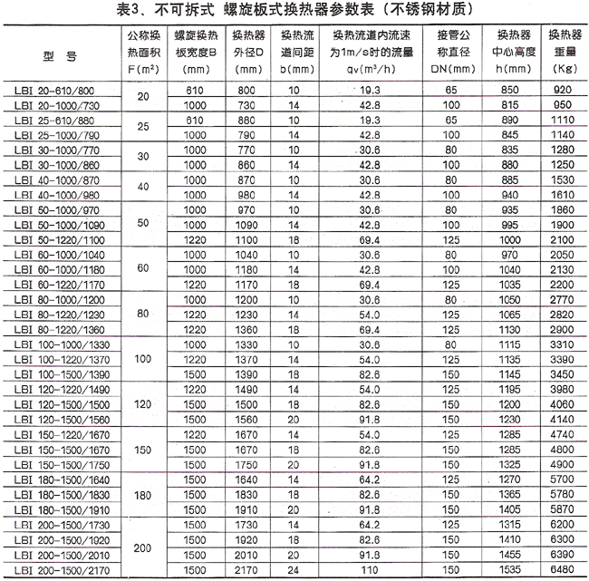 VI. Parameter Table of Spiral Plate Heat Exchanger