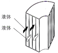 For the two media of heat exchange, one is liquid, and the other is vapor (gas), which can flow in a cross-flow manner. The so-called cross-flow means that the liquid flows in a spiral direction, and the vapor (gas) directly passes through the axial direction of the heat exchanger, as shown in Figure 3. This is mainly due to the characteristics of vapor (gas), which is suitable for larger flow, reduced resistance and suitable for organic vapor condensation. According to the specific working conditions, steam can also flow in the spiral direction, but the gas usually passes directly in the axial direction because of its small heat capacity.