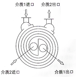 For the two media for heat exchange, if they are both liquids, they flow in the spiral direction in the six channels of the spiral plate heat exchanger, as shown in Figure 2, and they flow in countercurrent. The so-called countercurrent means that the two liquids flow in opposite directions in the adjacent channels, so that the two fluids can always keep a certain temperature difference in the process of mutual heat transfer, thus achieving better results.